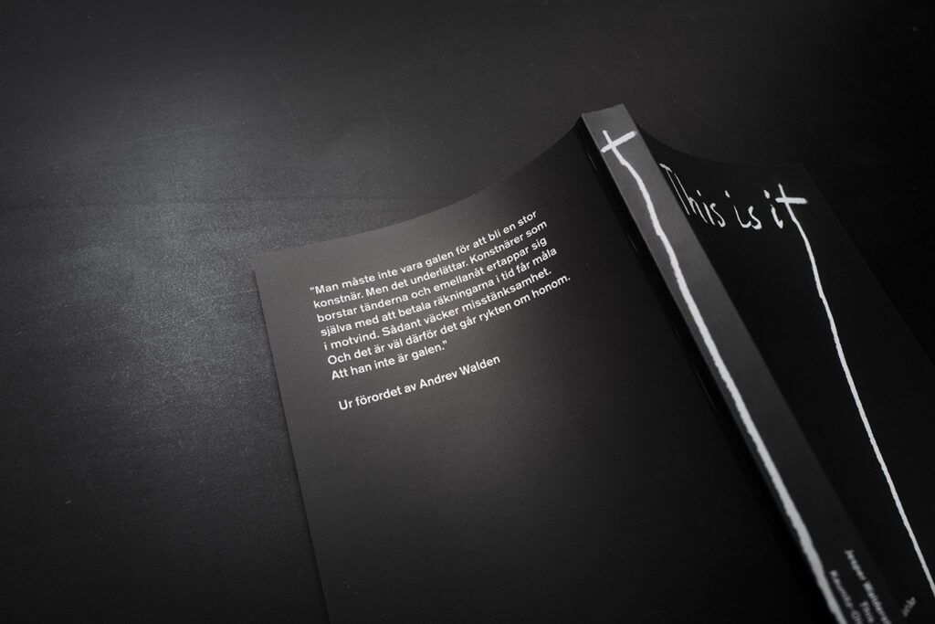 Från en av Sveriges mest hyllade bildkonstnärer kommer nu This is it ! – en bok som öppnar dörren till Jesper Walderstens unika universum. Här möts poesi, träffsäkra oneliners och svart humor i ett flöde av visuella kollage som både underhåller och utmanar. I This is it ! får vi ta del av Walderstens senaste års produktion: målningar, teckningar, fotografier, texter och kollage. Ord och bild vävs samman och bildar en ny helhet, en suggestiv blandning långt bortom den traditionella konstboken.